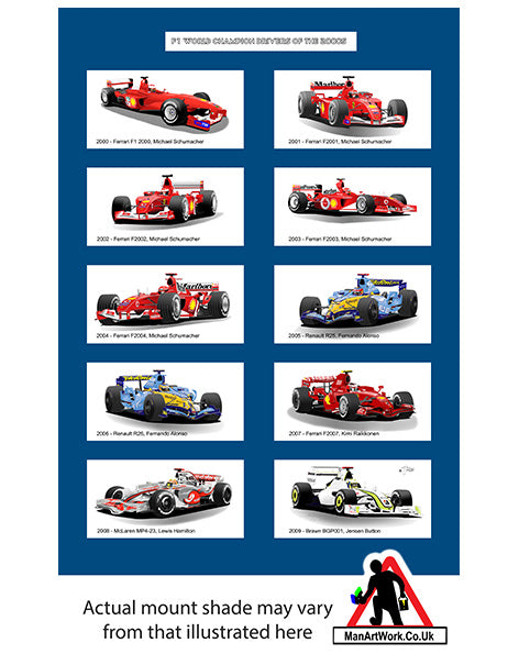 F1 racing World Champions of the 2000s A4 Art Print : Schumacher; Alonso, Hamilton