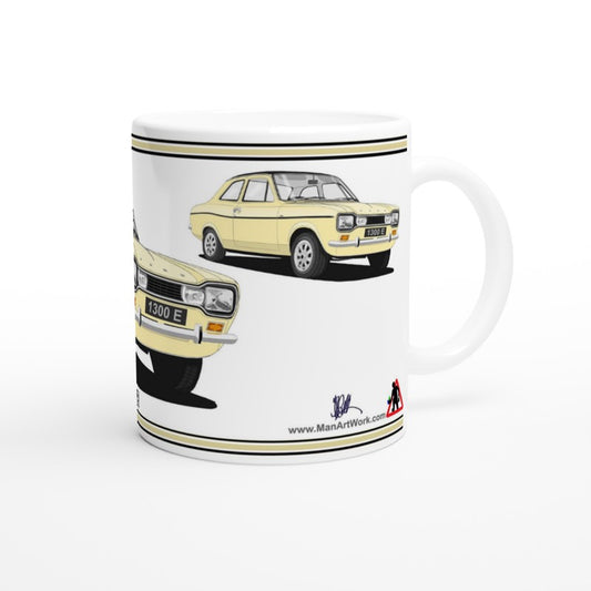 Ford Escort Mk1 1300E 4 Door Yellow Art Mug