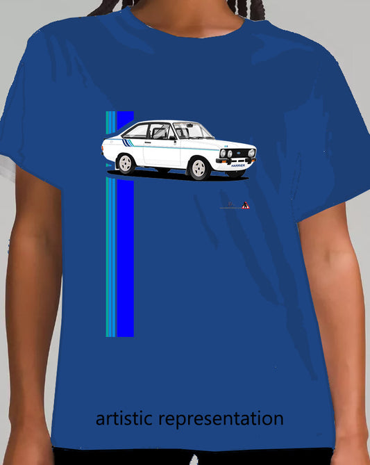 Ford Escort Mk2 Harrier in White on Blue T Shirt
