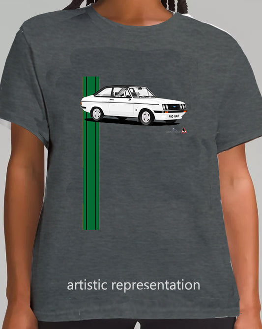 Ford Escort Mk2 RS2000 in Sports Green Art T Shirt (Words)