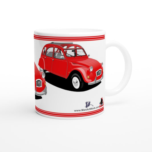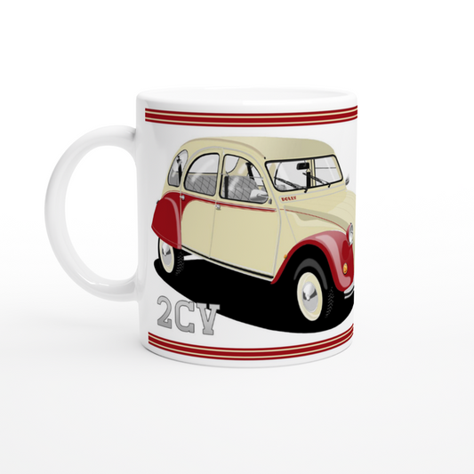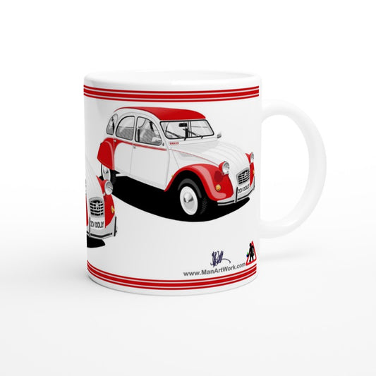 Citroen 2CV in Dolly in Red & Cream Art Mug