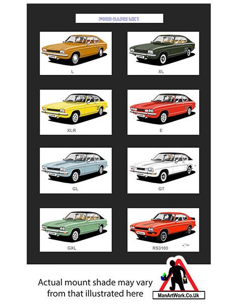 Ford Capri Mk1, Mk2 & Mk3 A4 Art Print