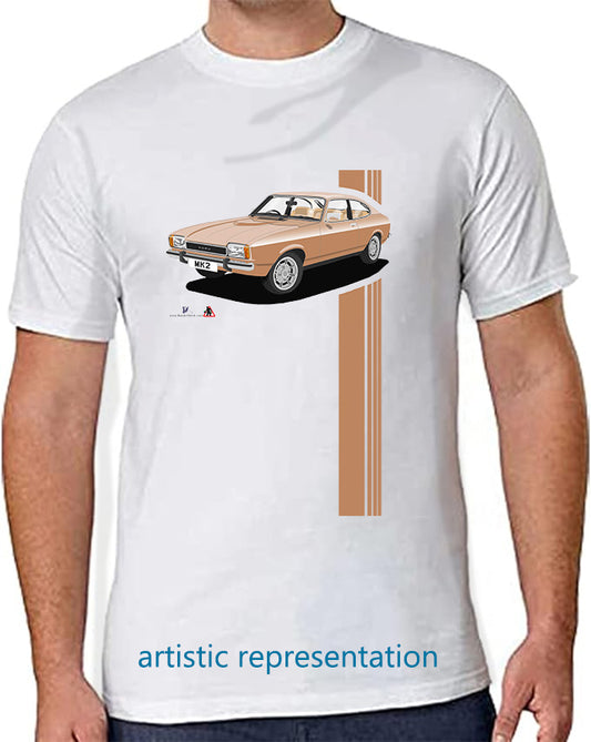 Ford Capri Mk2 Ghia in Light Gold & Black T Shirt