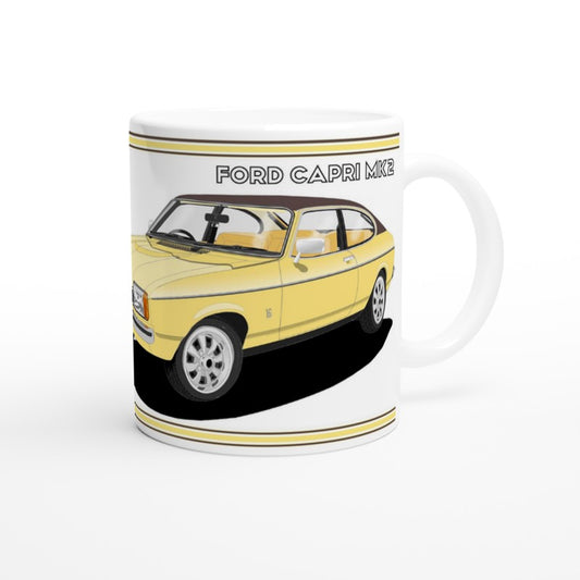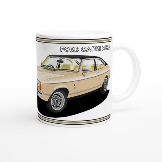Ford Capri Mk2 Ghia in White & Beige Art Mug