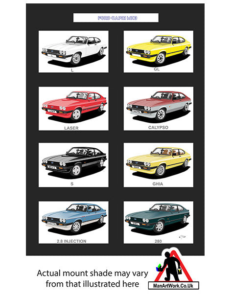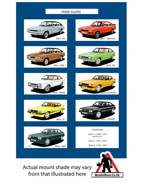 Ford Capri Mk1, Mk2 & Mk3 A4 Art Print