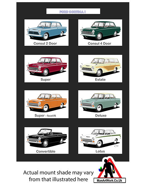 Ford Cortina Mk1, Mk2, Mk3, Mk4 & Mk5 A4 Art Print
