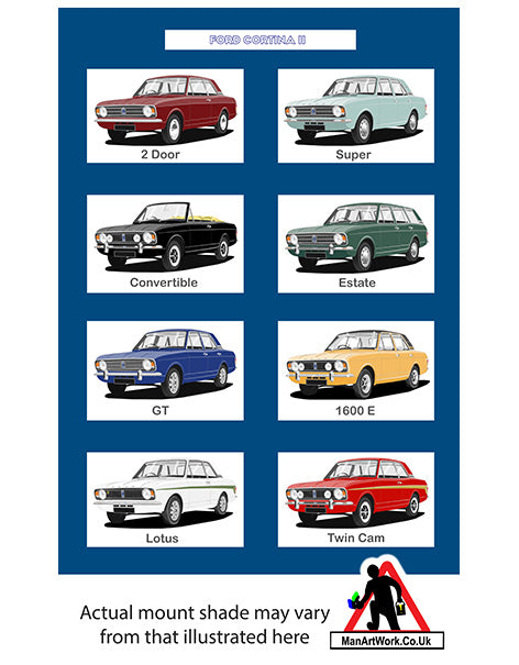 Ford Cortina Mk1, Mk2, Mk3, Mk4 & Mk5 A4 Art Print