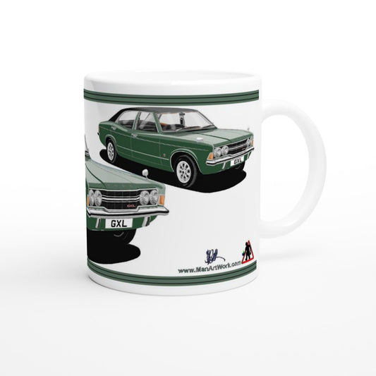 Ford Cortina Mk3 GXL in Dark Green Art Mug