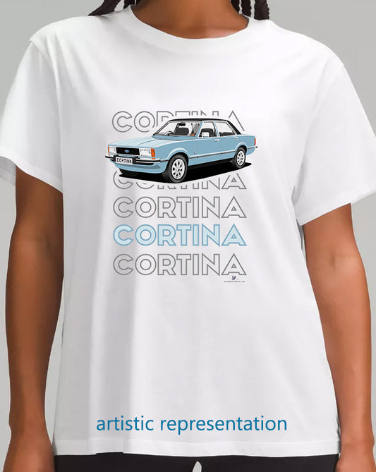 Ford Cortina Mk4 Ghia in Light Blue Art T Shirt (Words)