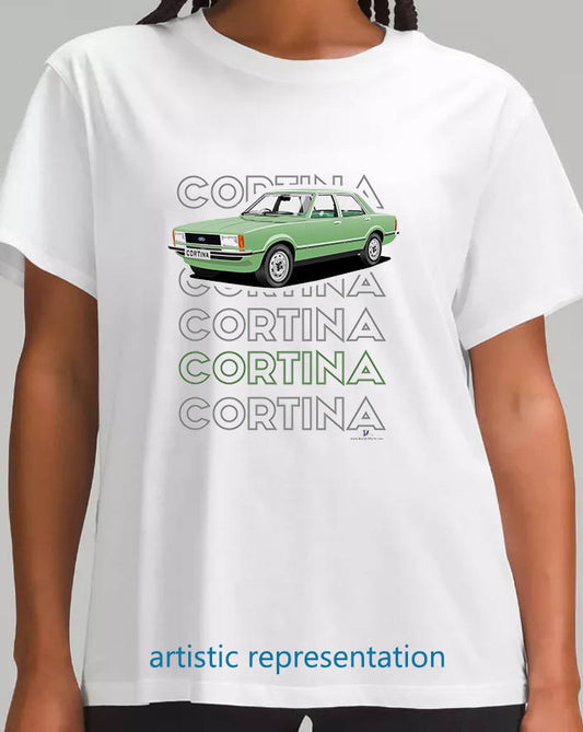 Ford Cortina Mk4 L in Green Art T Shirt (Words)