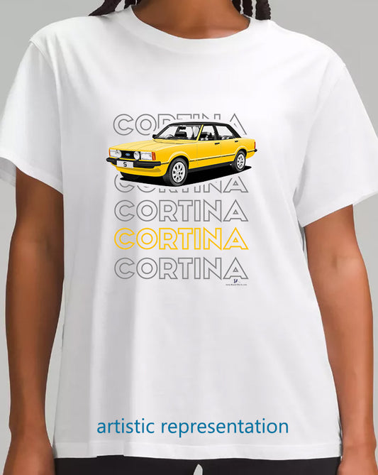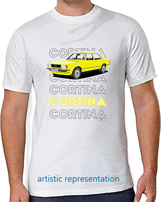 Ford Cortina Mk4 L in Yellow Art T Shirt (Words)
