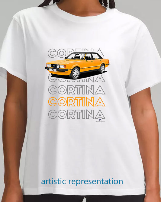Ford Cortina Mk4 S in Amber Art T Shirt (Words)