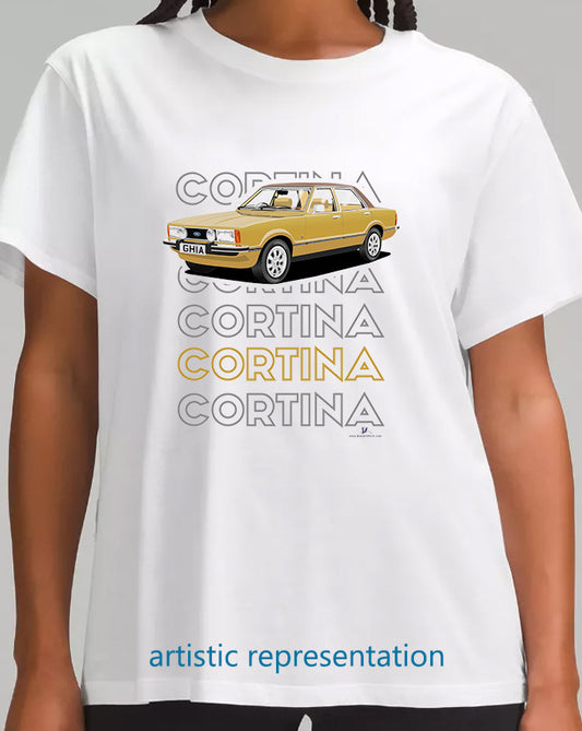 Ford Cortina Mk4 Ghia in Gold Art T Shirt (Words)