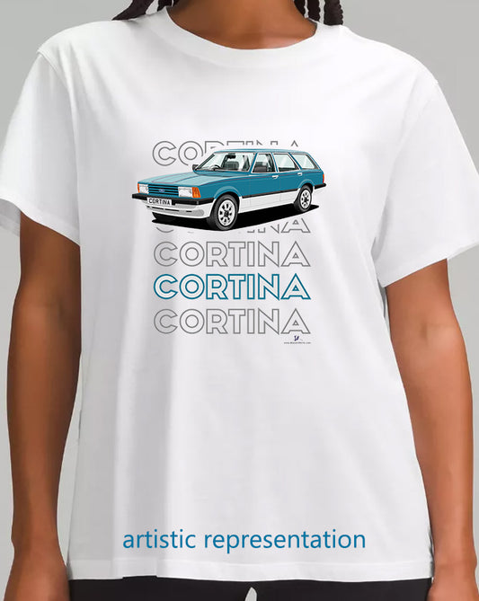 Ford Cortina Mk5 Crusader Estate in Blue & Silver Art T Shirt (Words)