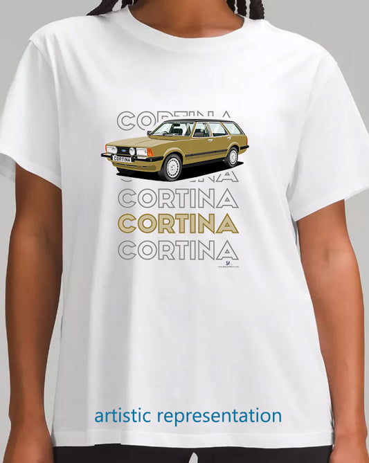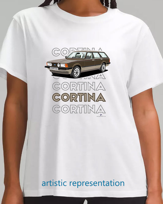 Ford Cortina Mk5 Crusader Estate in Brown Art T Shirt (Words)