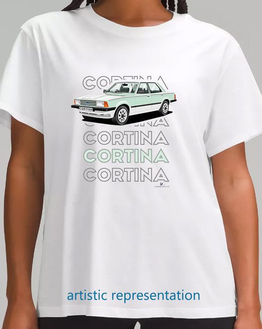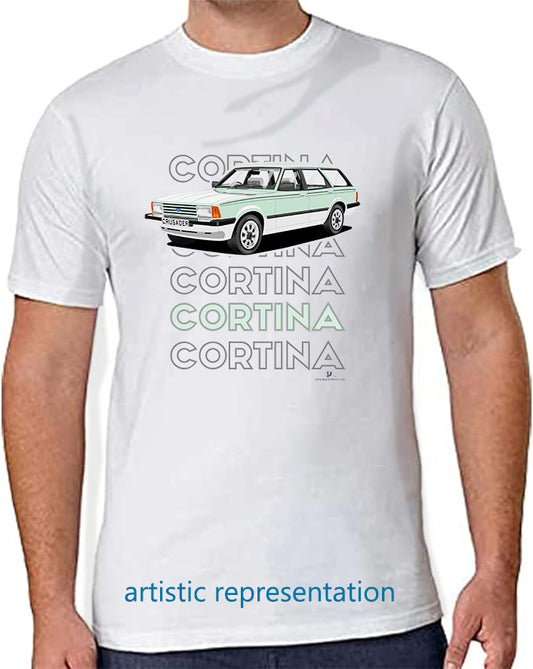 Ford Cortina Mk5 Crusader Estate in Green Art T Shirt (Words)