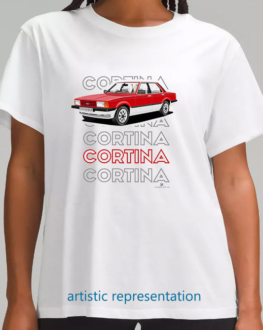 Ford Cortina Mk5 Crusader in Red & Silver Art T Shirt (Words)