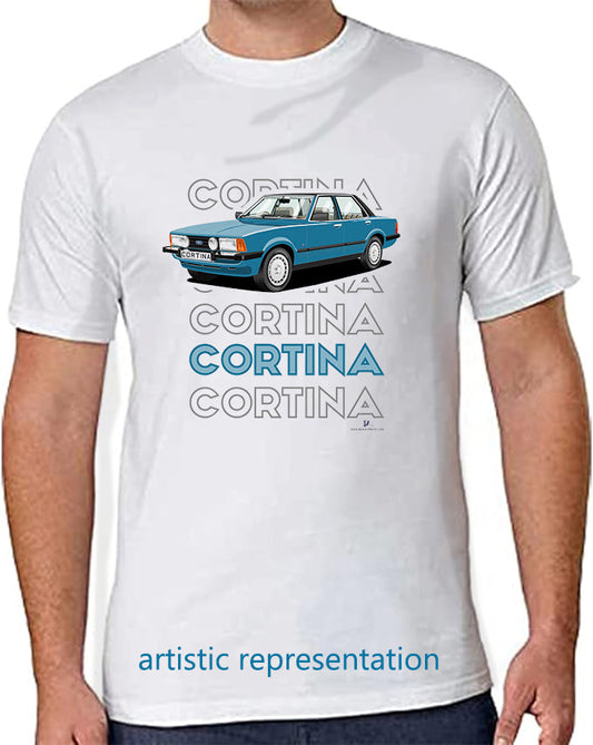 Ford Cortina Mk5 Ghia in Blue Art T Shirt (Words)