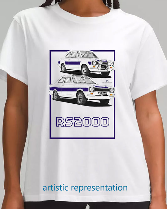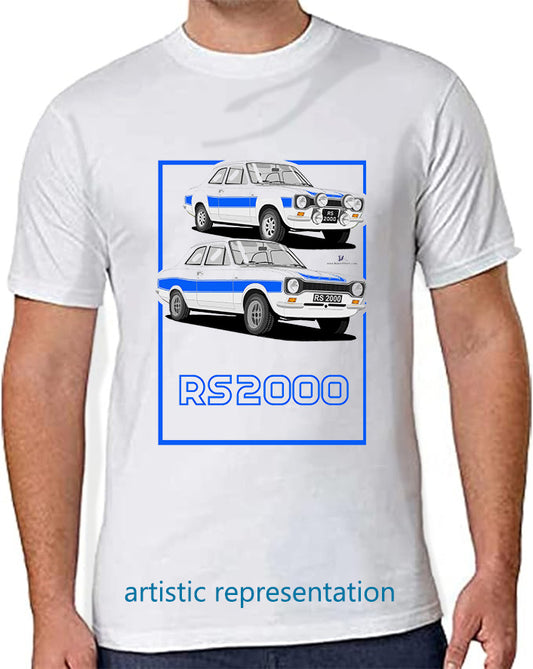 Ford Escort Mk1 RS2000 in White & Blue T Shirt (Words)