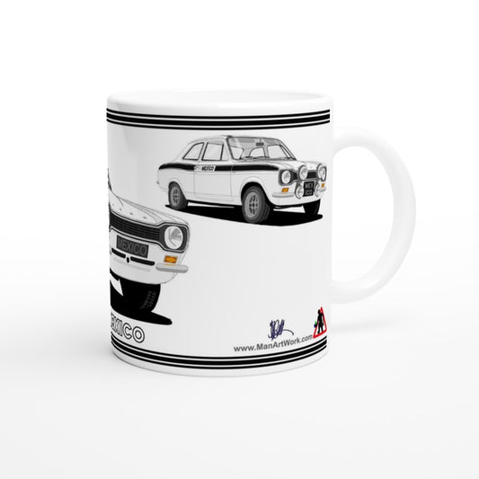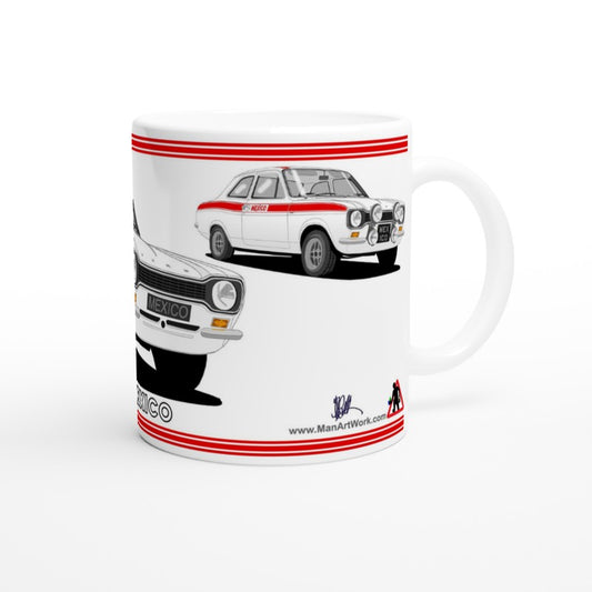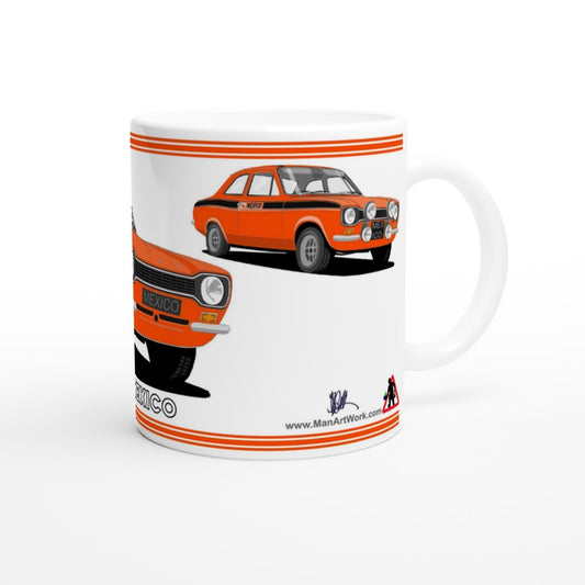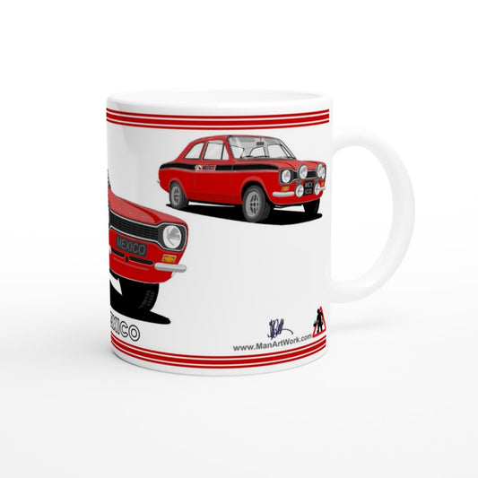 Ford Escort Mk1 Mexico in White & Red Art Mug