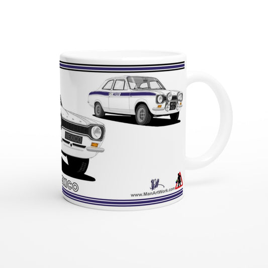 Ford Escort Mk1 Mexico in White & Blue Art Mug