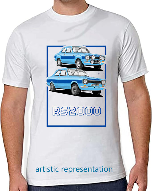 Ford Escort Mk1 RS2000 in Blue T Shirt (Words)