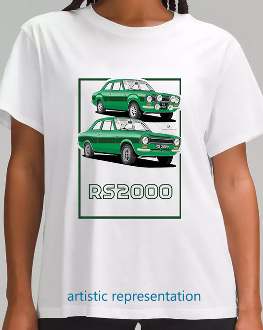 Ford Escort Mk1 RS2000 in Green T Shirt (Words)