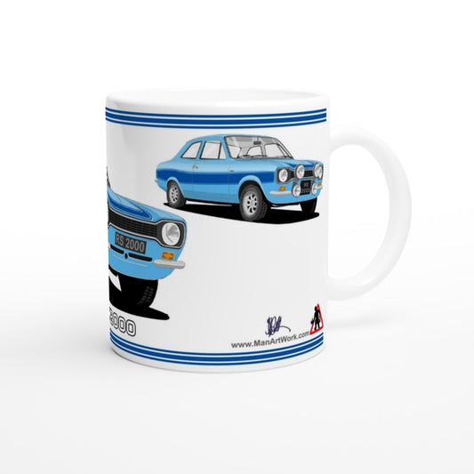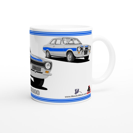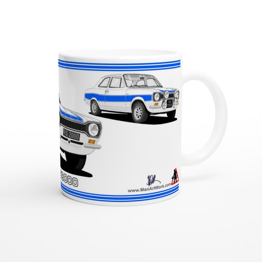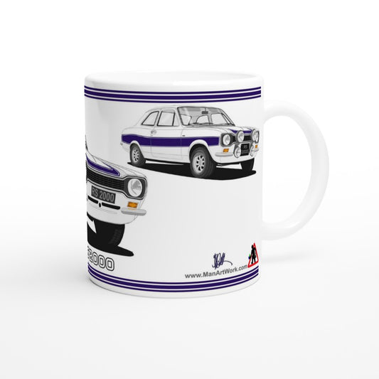 Ford Escort RS2000 Mk1 in White and Blue Art Mug