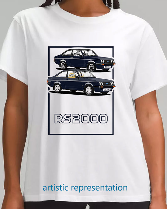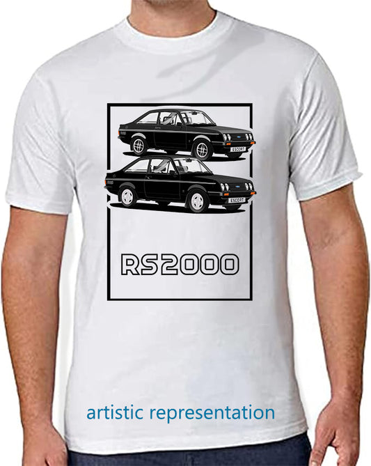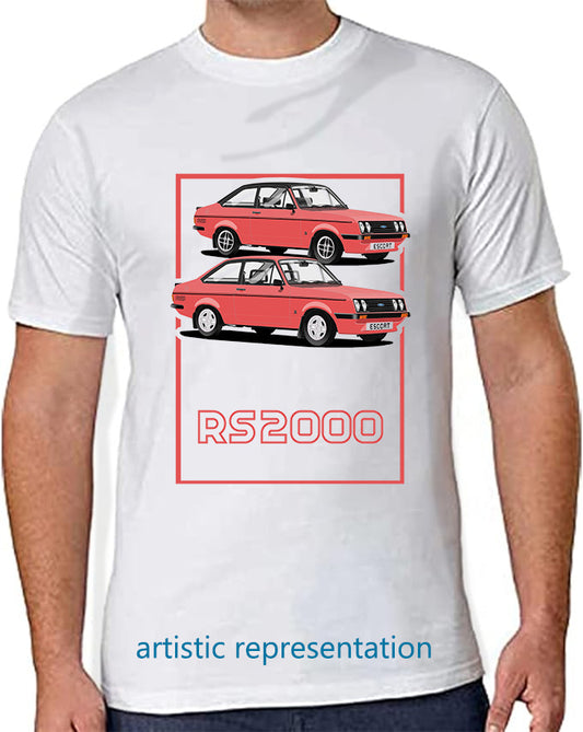 Ford Escort Mk2 RS2000 in White Art T Shirt (Words)