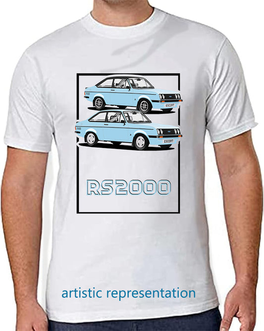 Ford Escort Mk2 RS2000 in Light Blue Art T Shirt (Words)