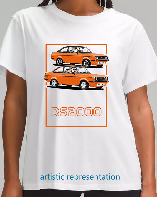 Ford Escort Mk2 RS2000 in Orange Art T Shirt (Words)