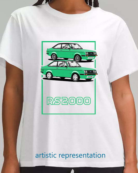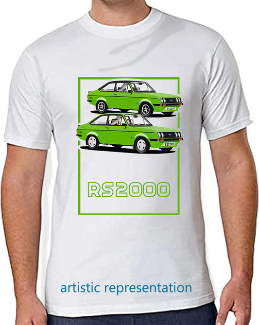 Ford Escort Mk2 RS2000 in Sports Green Art T Shirt (Words)