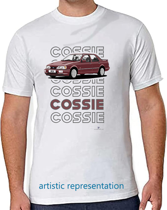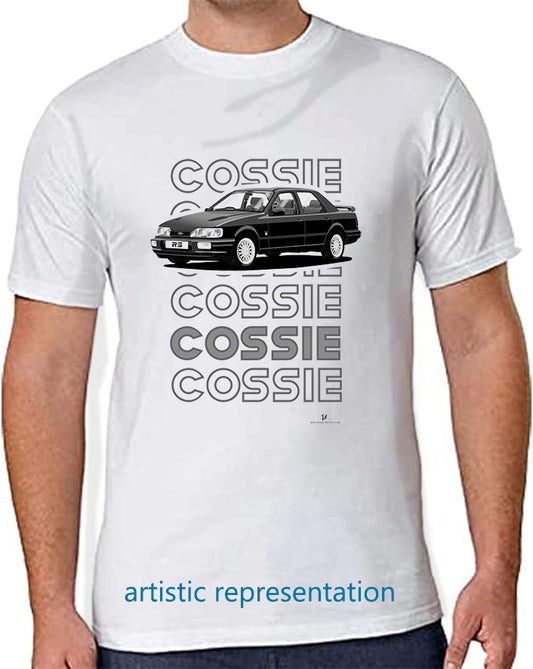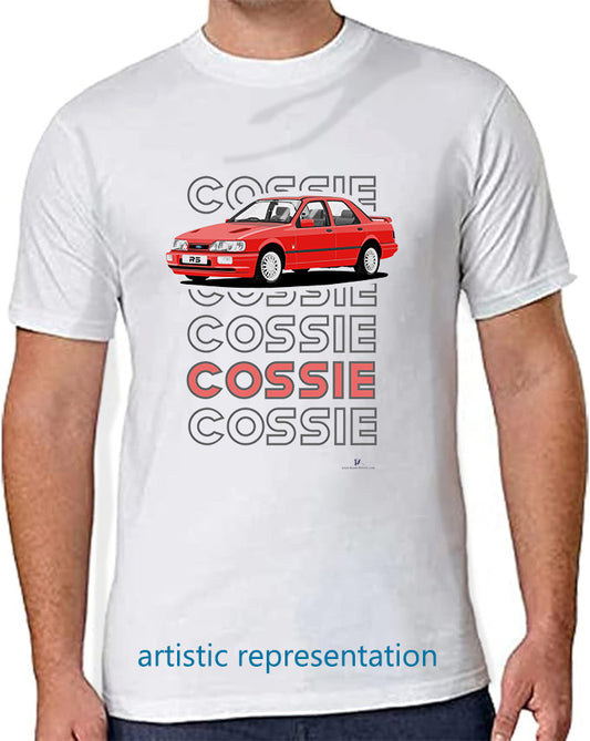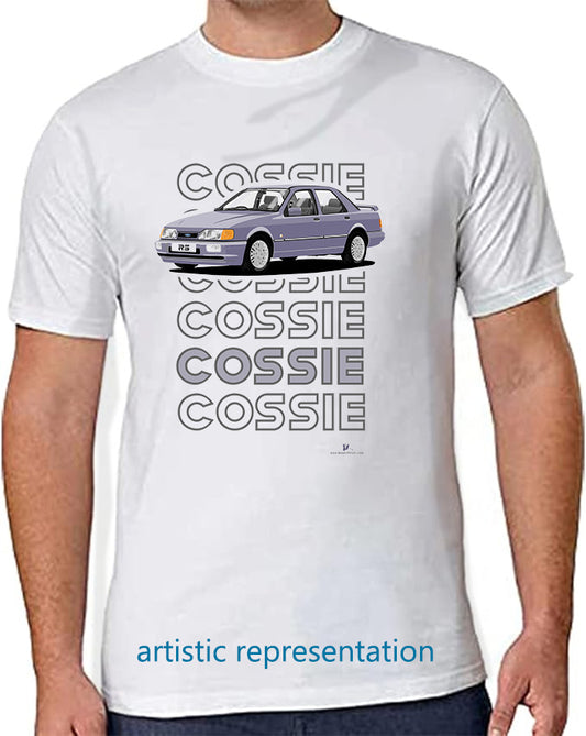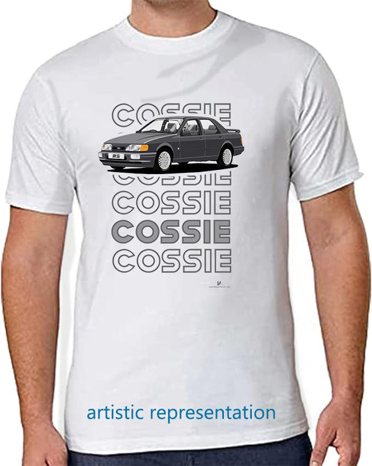 Ford Sierra Sapphire RS Cosworth 2WD in White Art T Shirt (Words)
