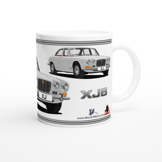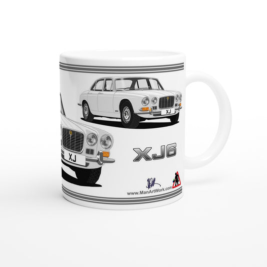 Jaguar XJ6 Mk1 in White Art Mug