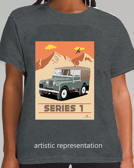 Land Rover Series 1 in Gray Green (Mountains) Art T Shirt