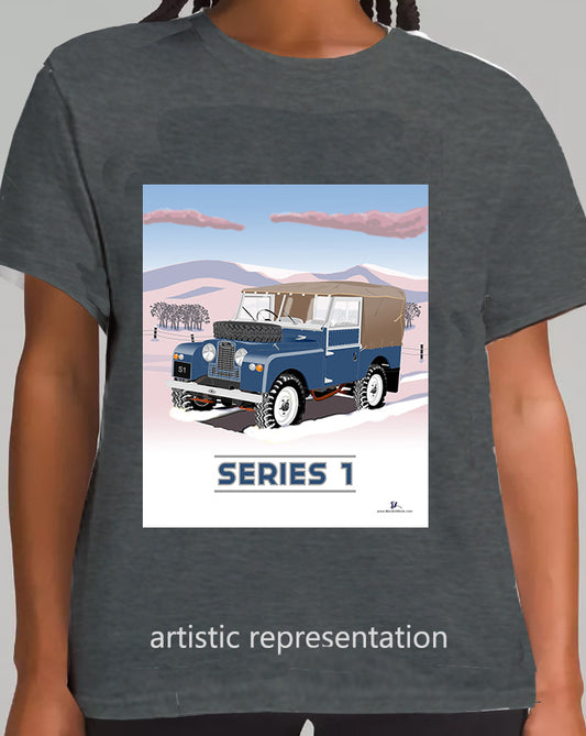 Land Rover Series 1 in Mid Blue (Mountains) Art T Shirt