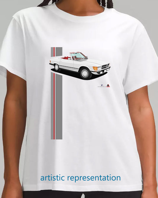 Mercedes SL (R107) in White and Black T Shirt