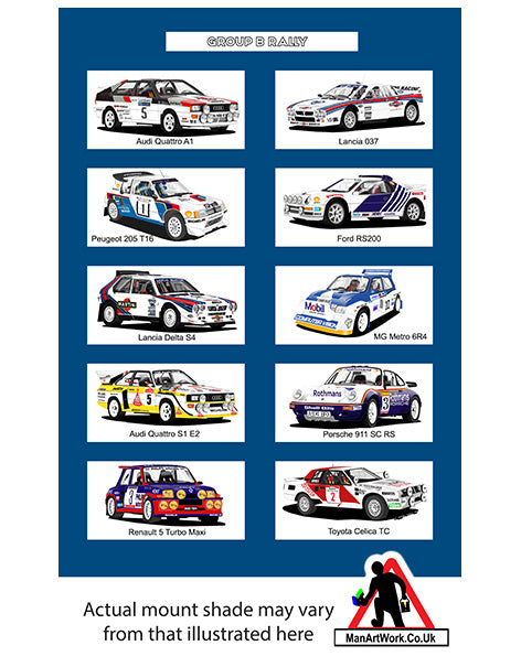Group B Rally cars A4 Art Print : Delta, 6R4, 205 T16, RS200, Quattro