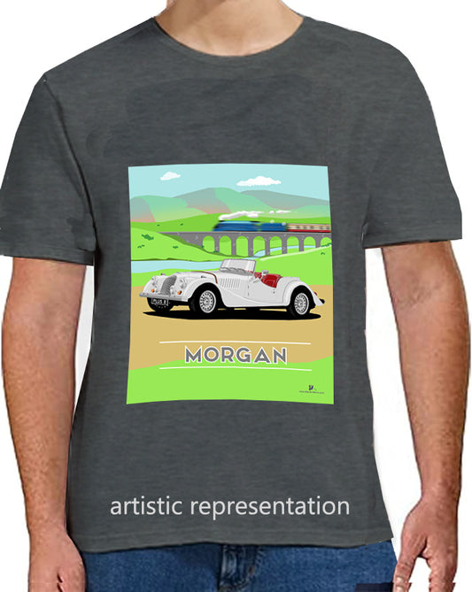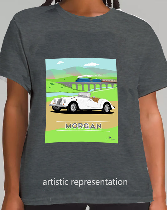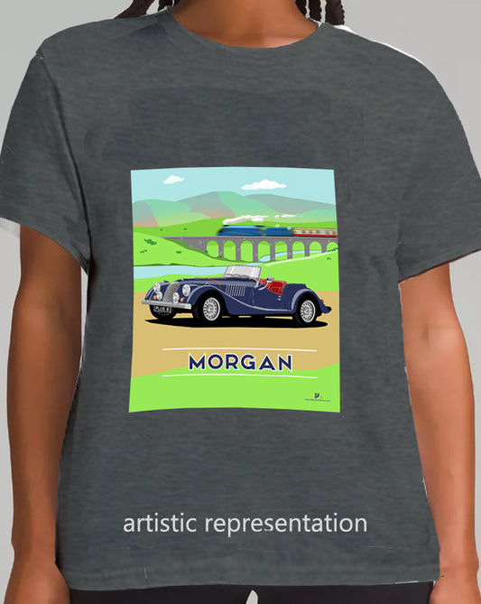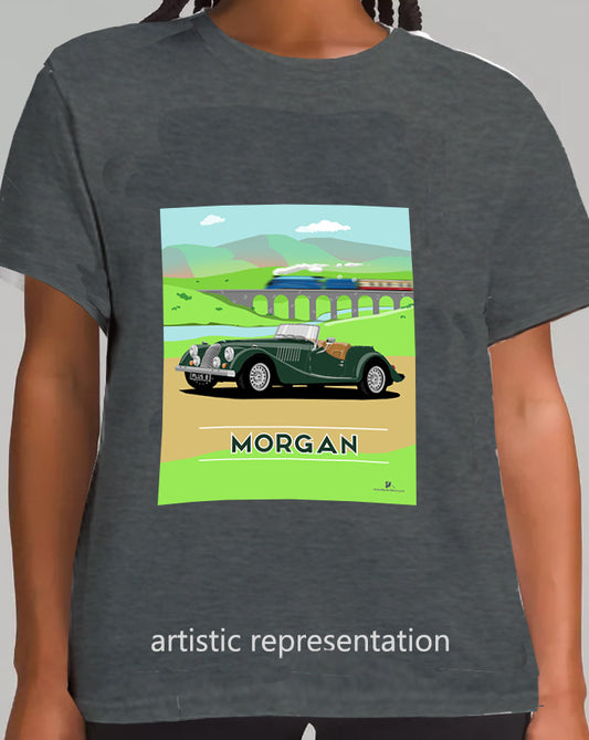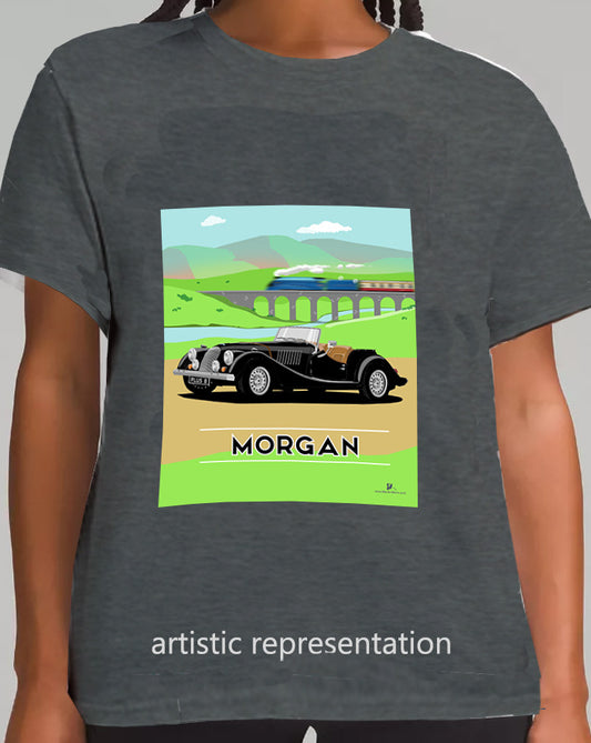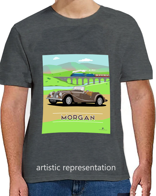 Morgan Plus 8 in Black with Train Art T Shirt