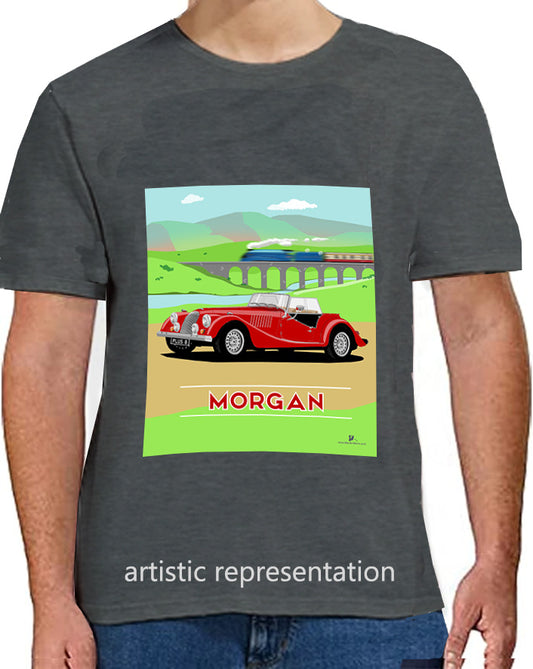 Morgan Plus 8 in Red with Train Art T Shirt