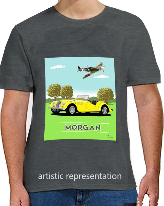 Morgan Plus 8 in Yellow with Spitfire Art T Shirt