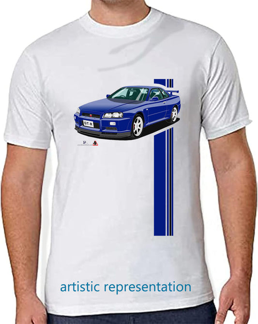 Nissan Skyline GTR 34 in Blue Art T Shirt