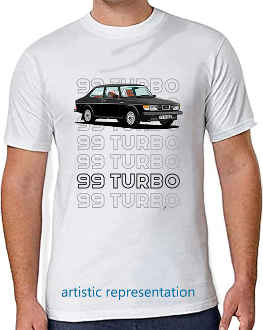 Saab 99 Turbo 2 Door in Black Art T Shirt (Words)