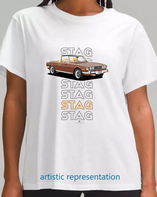 Triumph Stag in White & Chestnut Art T Shirt (Words)