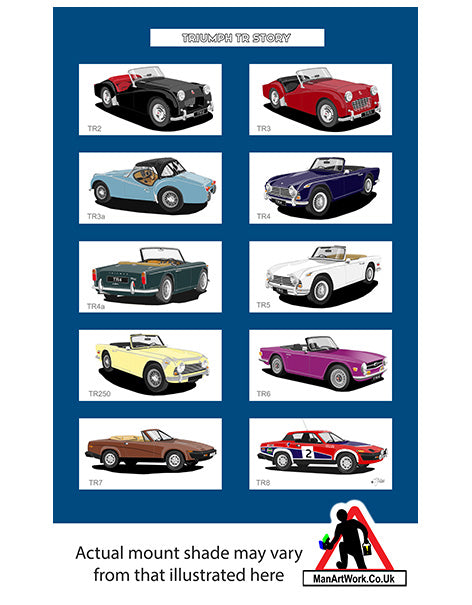 Triumph TR2 TR3 TR4 TR5 TR6 TR7 TR8 A4 Art Print